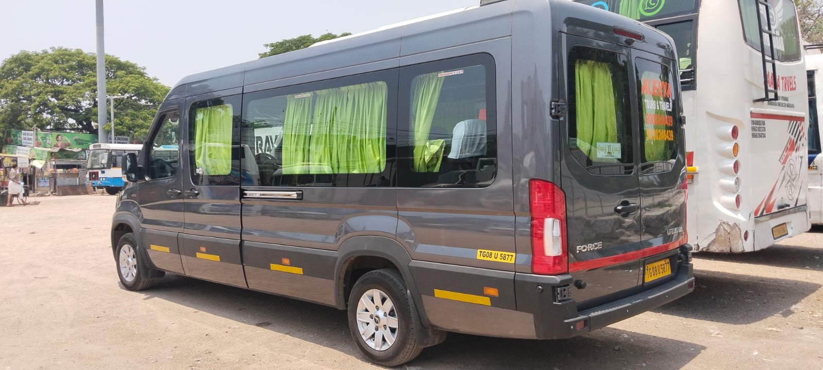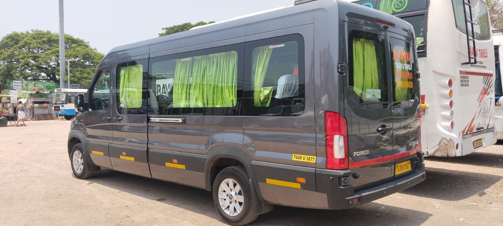 Renting a Force Urbania in Hyderabad is the ultimate choice for those seeking a premium, stylish, and ultra-comfortable travel experience for small to mid-sized groups. Designed with modern aesthetics and engineered for long-distance performance, the Force Urbania is perfect for corporate travel, luxury family tours, VIP guest movement, airport transfers, wedding logistics, and outstation trips. With configurations like 12+1 and 16+1 seating, the Urbania offers plush recliner seats, ample legroom, individual AC vents, ambient LED lighting, a high-roof cabin, and top-tier suspension for a smooth, vibration-free ride. The interiors feel more like a private executive lounge than a passenger van, making it ideal for travelers who expect sophistication along with functionality. At Alekya Urbania Travels, we offer brand-new Force Urbania vans that are meticulously maintained, sanitized, and operated by professional, uniformed chauffeurs trained for premium hospitality. Whether it’s a short local transfer or a multi-day interstate journey, our Force Urbania rentals deliver a first-class travel experience with unmatched comfort, convenience, and safety. With personalized service, attention to detail, and a commitment to excellence, Alekya Urbania Travels ensures that your Force Urbania rental in Hyderabad is more than just transportation — it’s an upgrade to how your group travels.